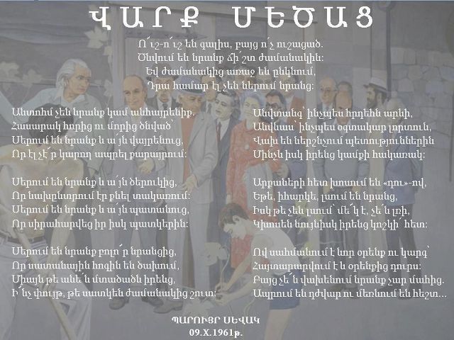 Անհատը պարտական է իր ընթացքն արդարացնել իր ժողովրդի առջեւ, իսկ ժողովուրդը` իր պատմութեան: Индивид обязан свои действия оправдать перед своим народом, а народ перед своей историей.